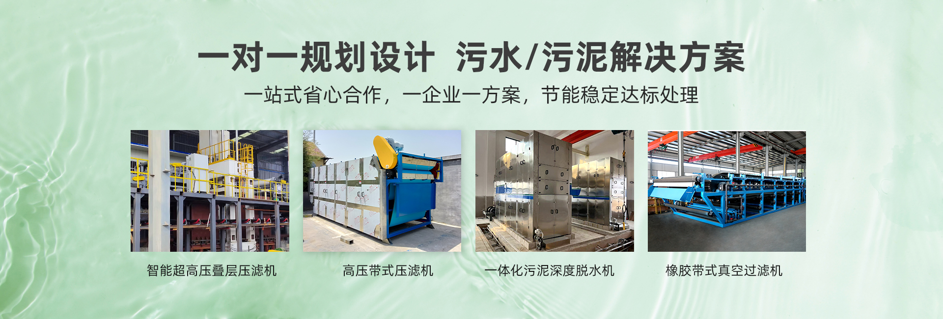 主營產品:超高壓疊層壓濾機、高壓帶式壓濾機、橡膠帶式真空過濾機 、帶式濃縮脫水一體機、帶式壓濾機、一體式污泥深度脫水機、帶式果汁壓榨機、疊螺式污泥脫水機、轉鼓式濃縮脫水一體機、刮吸泥機、一體化污水處理設備、氣浮機、加藥裝置、輸送機、污泥料倉等設備。產品廣泛應用于市政污水、工業廢水、食品與飲料、畜牧養殖、礦山、化工、造紙、制藥等領域。